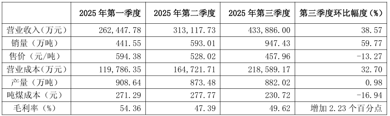 在煤炭生产业务方面,山煤国际展现出较强的经营韧性。财报显示,前三季度,公司实现煤炭生产业务收入100.95亿元,虽同比下降20.72%,但原煤产量与自产煤销量均实现同比增长:原煤产量2664.14万吨,同比增长8.73%;自产煤销量1981.99万吨,同比增长5.31%。